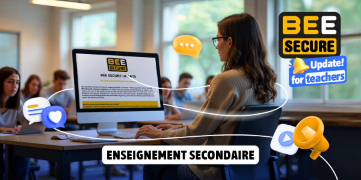 De BEE SECURE UPDATE faasst déi aktuell Themen zesummen, déi am Moment an der digitaler Welt wichteg sinn an Hinsicht op d’ Missioun fir eng méi responsabel a sécher Notzung vum Internet ze sensibiliséieren. Méi Informatiounen zu BEE SECURE fannt Dir hei.